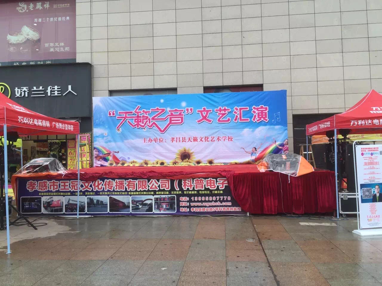 孝感市王冠文化傳播有限公司是由孝昌科普電子獨(dú)資,承接演出、奠基開(kāi)盤(pán)、門(mén)店開(kāi)業(yè)、企業(yè)年會(huì)、比賽及社會(huì)公益活動(dòng)的策劃和執(zhí)行。對(duì)外出租LED屏、音響、舞臺(tái)、燈光、投影、桁架。代理整合主持人、演員、模特、明星等節(jié)目資源。